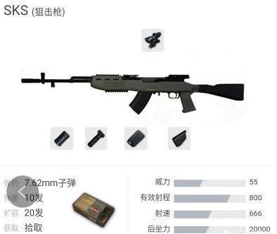 其次从配件上看sks满配需要5大件,仅靠自己是很难收集齐全(基本没见到满配)。而mini只需要一个枪口和扩容单价就满配了,而且游戏中mini刷新率高,这绝对是优先考虑的连狙。当然了满配的sks打起来很稳,这点是mini比不上的,而且满配后sks载弹也有20发这点是很恐怖的,只要枪法没问题3枪就可以干掉敌人。
