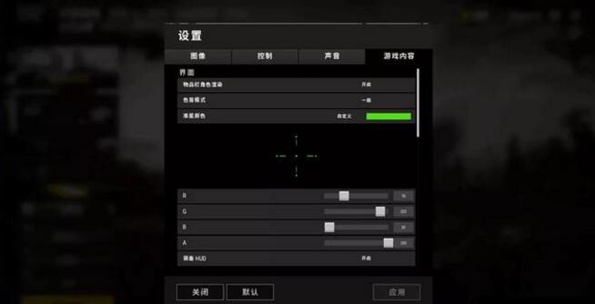 因为主要是靠腰射,所以系统默认的白色准心我们要进行更改,比如调成绿色、红色、深红色都可以,这些颜色绝对比白准心好使。设置-游戏内容-自定义准心颜色即可。