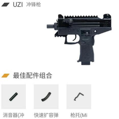 乌兹这把枪射速在微冲里边是最快的,对于伤害来说比较低但是进站对拼拿这把枪真的很厉害,其三个配件枪口弹夹和枪托都是游戏里很容易遇到的,对于这把射速极高的枪非常吃扩容和枪托,其缺点在于不能安装瞄准镜需要机瞄,远距离就显得非常没用。UZI可以用来密集城区像P城这种的楼攻楼,使用它开第一视角攻楼非常给力。