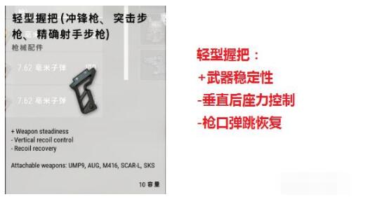 对于精确操作能力强的玩家,点射使用的步枪或者精确射击步枪(即俗称连狙),强烈推荐“轻型握把”!为什么推荐这个配件,因为该配件的三个属性是对一个后座力方向作用且具有独特累加效应: