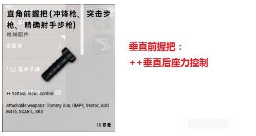 1.仅仅将M416作为50米内武器的玩家:强烈推荐老握把“垂直握把”!垂直握把将垂直后座力控制加倍,在近距离战斗中,距离越近,枪口左右跳动导致的着弹点分散程度越小,也就是说有效击中的子弹受到的左右偏移影响越小,垂直握把可以完美抵消改版后垂直座力增加导致的枪口垂直上跳。
