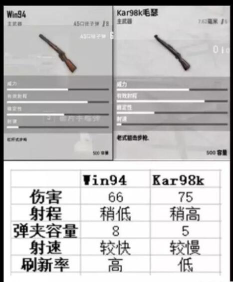 通过实际测试、观看直播和视频后发现,Win94除了不能装填瞄具之外,其他真的不逊色Kar98k,可惜的是伤害差了一点,真的就差那么一点! 如果你是喜欢狙击枪的玩家,碰到Win94请一定不要错过,因为这真的是一把好枪,可以帮你练习狙击枪的使用,并且伤害也不俗。 当然,相比98k,win94的综合性能自然是要差一点,但98K的刷新率较低,所以在没有98K的情况下,大家看到Win94不妨用一用,那时候你就会真正打开新世界的大门。