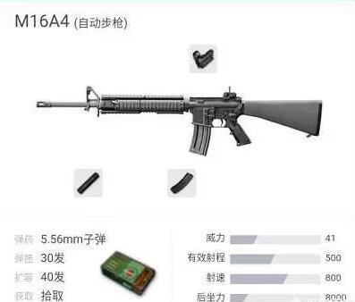 M16A4是一把常见的半自动步枪,采用5.56子弹。M16A4不像其他全自动步枪一样可以全自动扫射,而M16A4只能三连发或者是单发,但是威力很大,因为 M16A4只能打三连发,有很多玩家都用不习惯,所以都大家放弃使用他,打四倍镜远程单点还是很不错的。