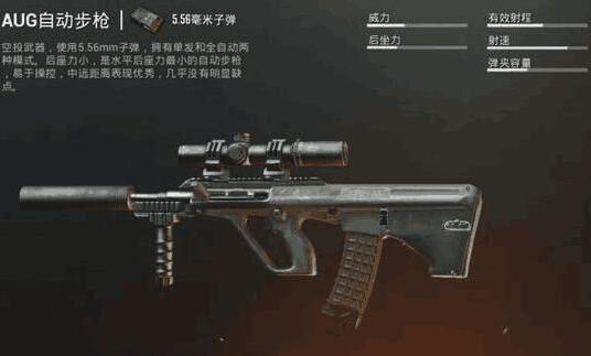aug:这把枪后坐力比M4还要小,伤害也是一般,一般新手使用这把枪也可以压好它的弹道。