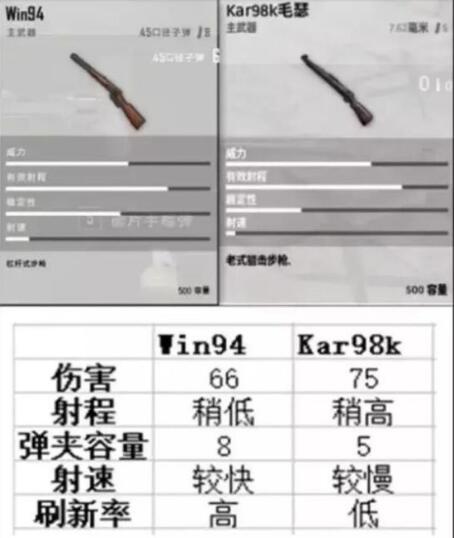 通过实际测试、观看直播和视频后发现,Win94除了不能装填瞄具之外,其他真的不逊色Kar98k,可惜的是伤害差了一点…真的就差那么一点! 如果你是喜欢狙击枪的玩家,碰到Win94请一定不要错过,因为这真的是一把好枪,可以帮你练习狙击枪的使用,并且伤害也不俗。 当然,相比98k,win94的综合性能自然是要差一点,但98K的刷新率较低,所以在没有98K的情况下,大家看到Win94不妨用一用,那时候你就会真正打开新世界的大门。