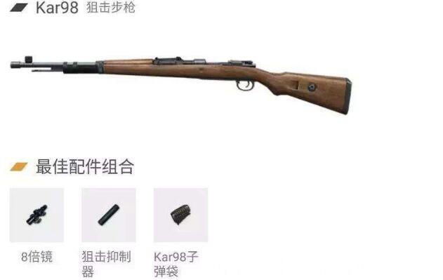 Kar98K狙击步枪,这个是大家最喜欢的狙击枪,单发射击,威力大,非常依赖倍镜,对操作要求比较高。
